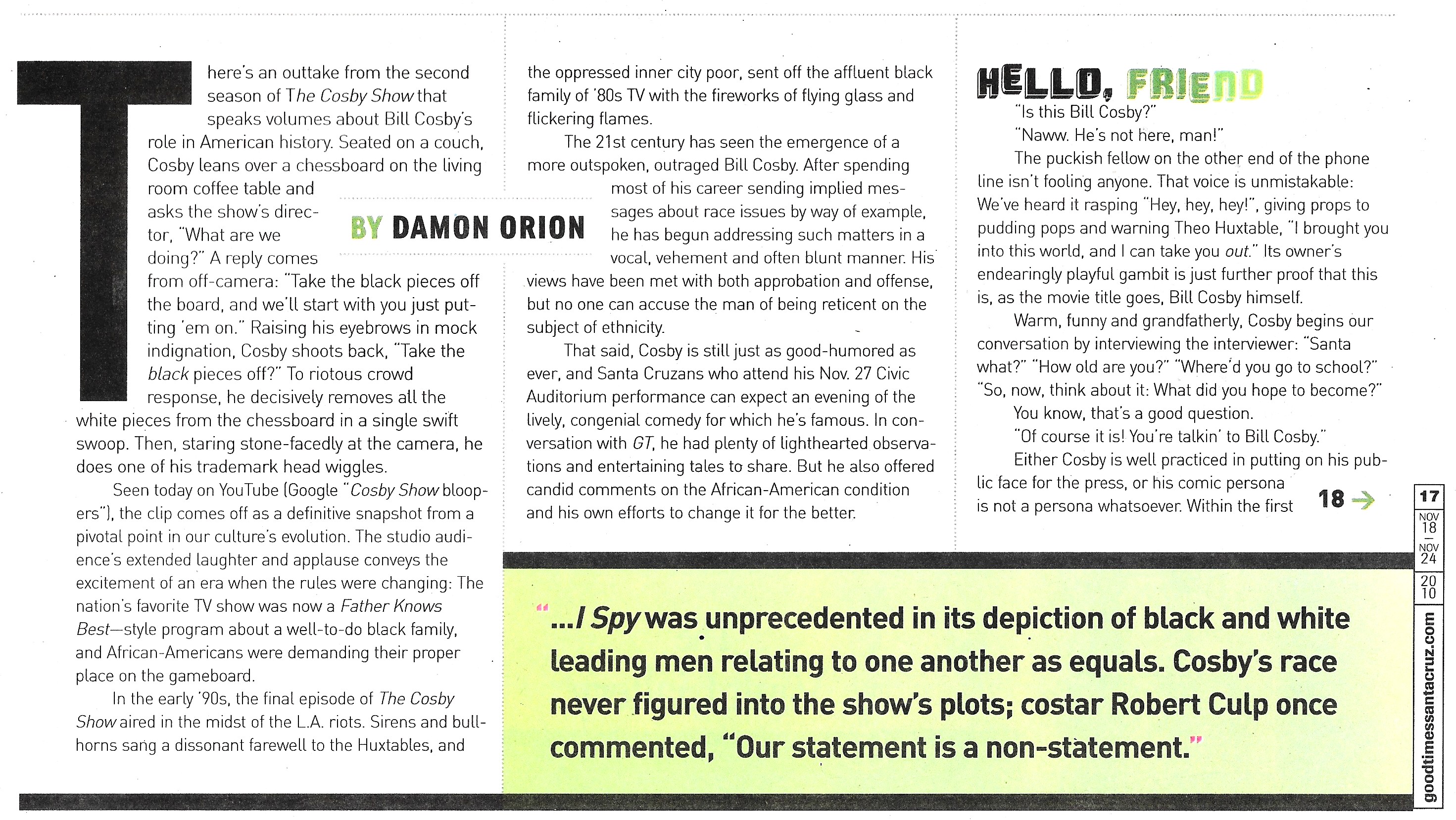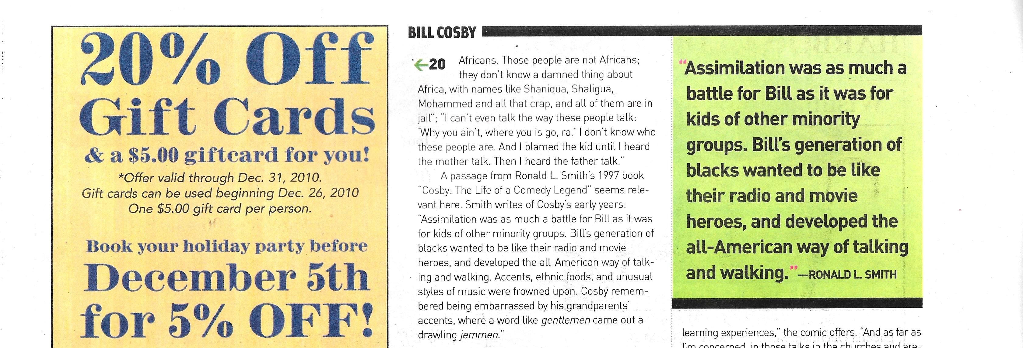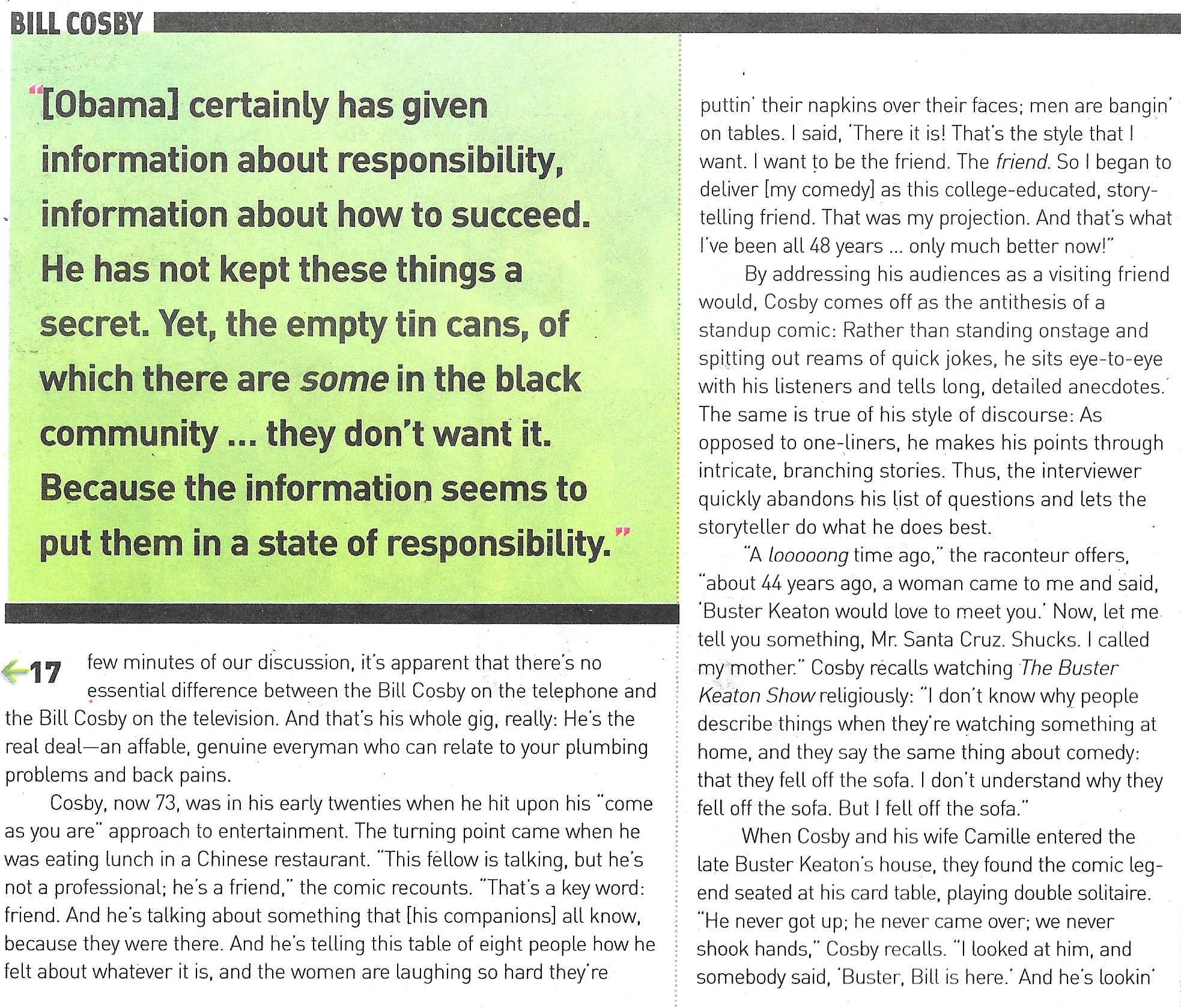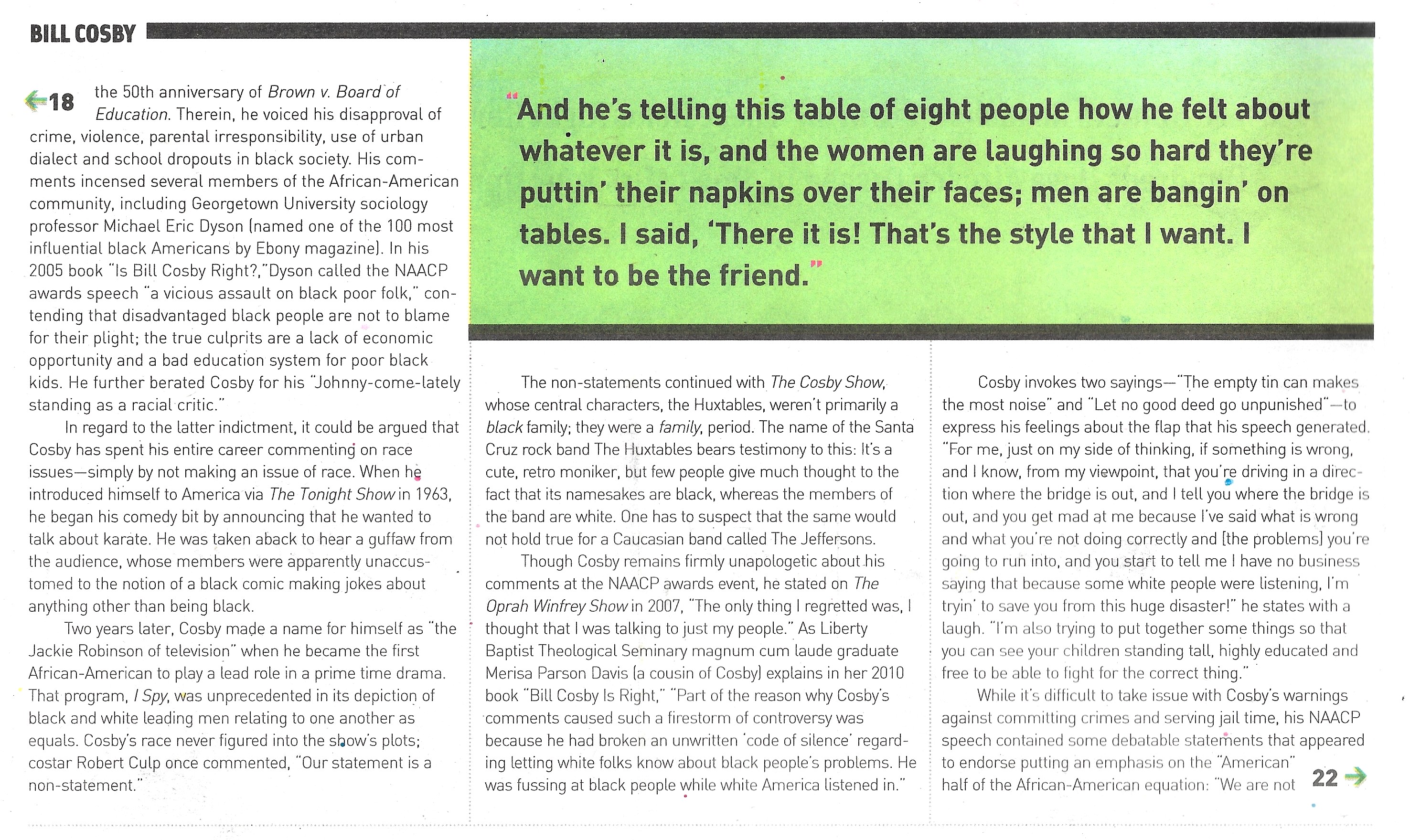 - Bill Cosby (Headline, P. 1, P. 2, P. 3, P. 4, P. 5, P. 6) This article was written prior to the filing of felony charges leading to Cosby’s imprisonment.